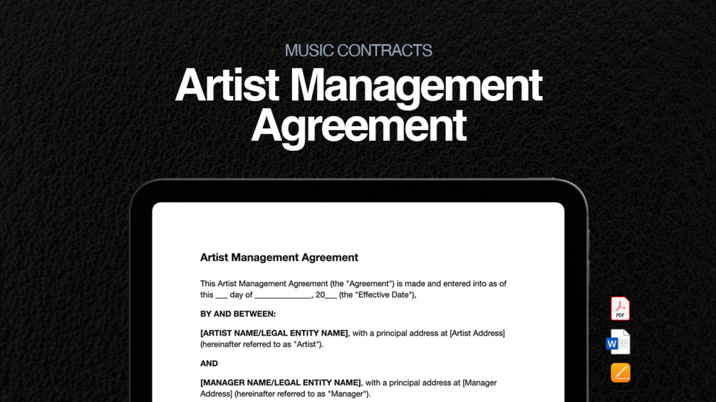 🤝 Fundamental Agreement Sections: Formalize the scope of management services, delineate responsibilities of both artist and manager, establish terms of engagement, specify compensation and commission structures, and define intellectual property rights related to managed activities.