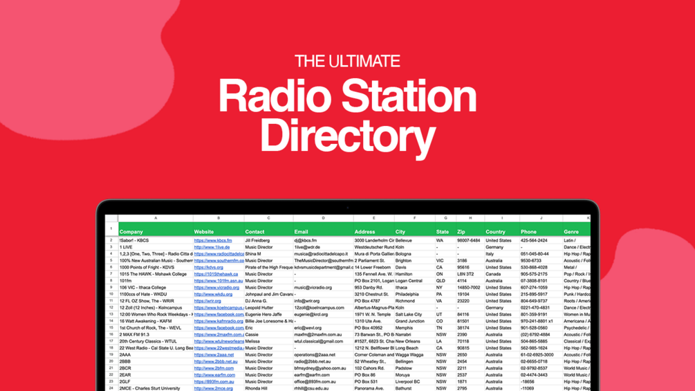 Access The Ultimate US Radio Station Directory with 3641+ stations, including verified emails, addresses, and websites, for less than a cup of coffee. Perfect for artists, managers, and promoters pitching music.